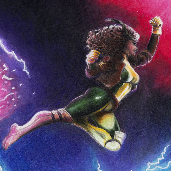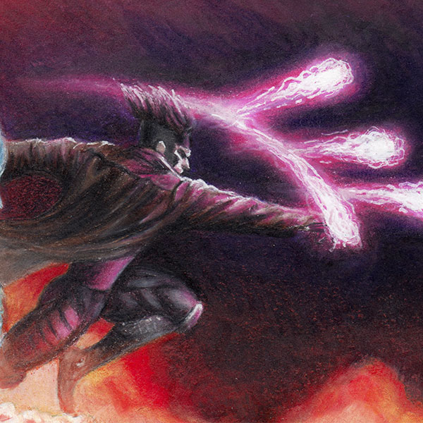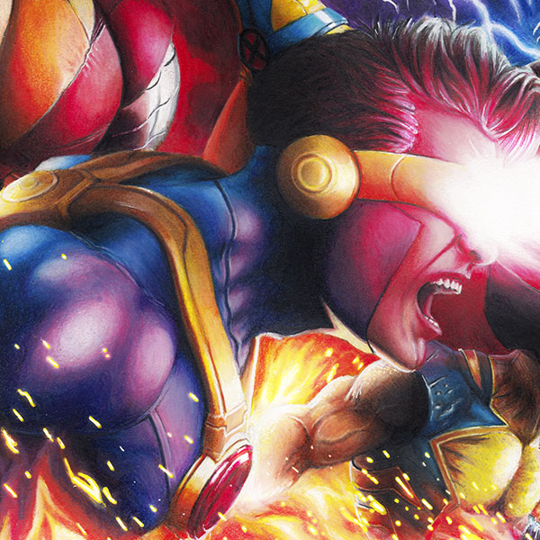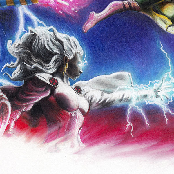 This piece was great fun to work on, with the wide variety of colours and intense composition. The special effects were the biggest challenge with fire, lightning and the odd optic blast.